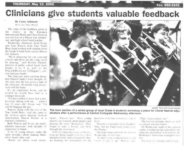 The value of the feedback given at the Kinsmen International Band and Choral Festival was not lost on a Moose Jaw elementary and high school band teacher. Wednesday afternoon, Scott Irvine and Joan Watson from the True North Brass band worked with students from the Gr 8 band from various Moose Jaw Schools.